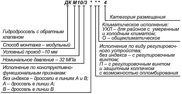 Гидродроссели с обратным клапаном типа ДКМ 10/3 предназначены для создания перепада давлений в подводимом и отводимом потоках рабочей жидкости или регулирования величины расхода при прохождении потока в одном направлении и для свободного пропускания потока при прохождении его в обратном направлении.