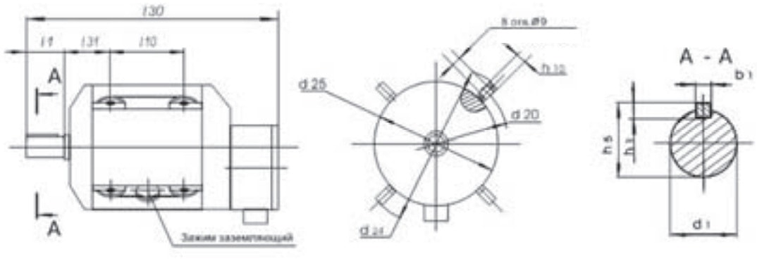 | P, кВт | Тип | Число полюсов | l30 | l1 | l10 | l31 | b1 | h5 | h10 | d1 | h1 | d20 9241 | d24 9241 | d25 9241 |