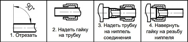 Разъемные соединения предназначены для присоединения пластиковых трубок к пневмоаппаратуре. Фиксация и уплотнение трубки обеспечивается путем ее зажима между коническими поверхностями штуцера и гайки соединения. Такой монтаж хорошо противостоит вибрациям и загрязнениям в окружающей среде.