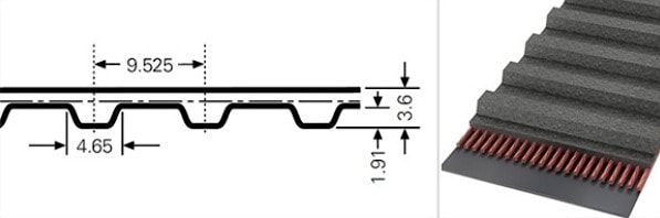 | Шаг зубьев | t | дюйм (1/10) | 3 / 8 |