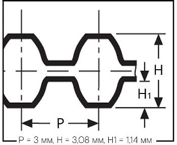| Профиль | Длина по корду в мм | Вариант маркировки | Серия MITSUBOSHI | Кол-во зубьев |