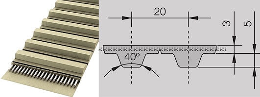 | Шаг зубьев | t | мм | 20 |