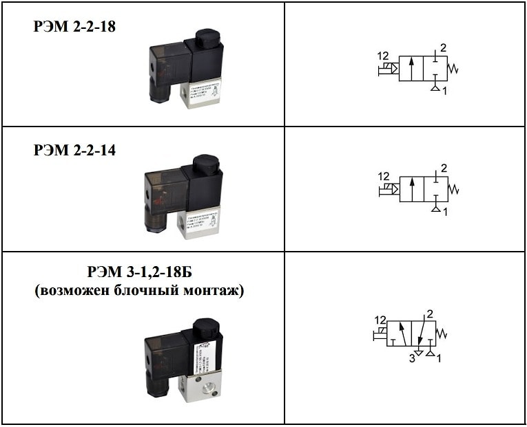 - резьбовое (возможен блочный монтаж) три отверстия в корпусе, трубы в стороны (РЭМ 3-1,2- 18Б).