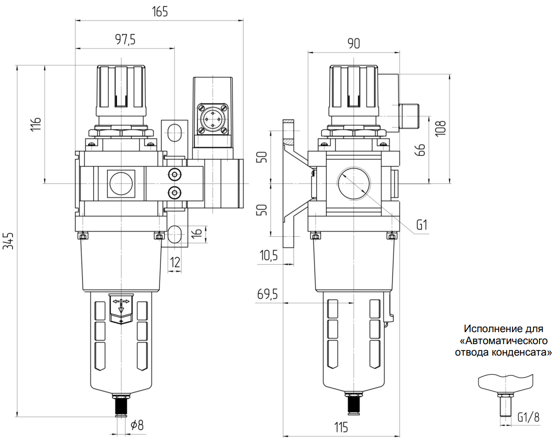 резьбой G3/8", климатическое исполнение УХЛ, категория размещения 4:БЛОК ПОДГОТОВКИ ВОЗДУХА П-ФРКВ-Р-10 УХЛ 4