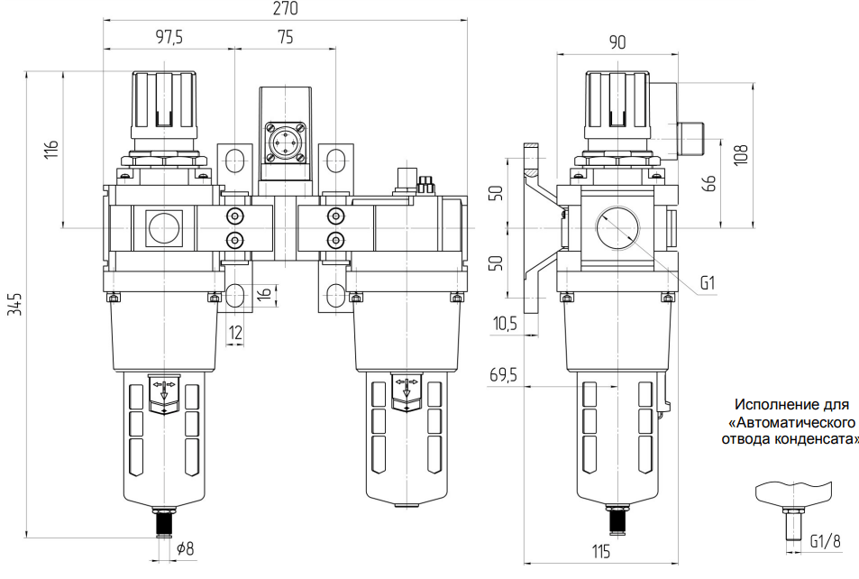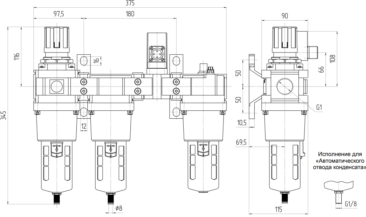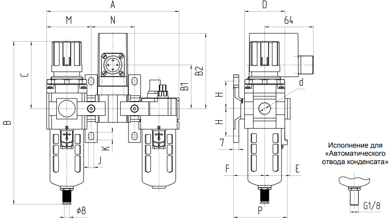 Для достижения фильтрации 5 мкм, к блоку кондиционирования устанавливается дополнительный фильтр-влагоотделитель типа П-ФВ.