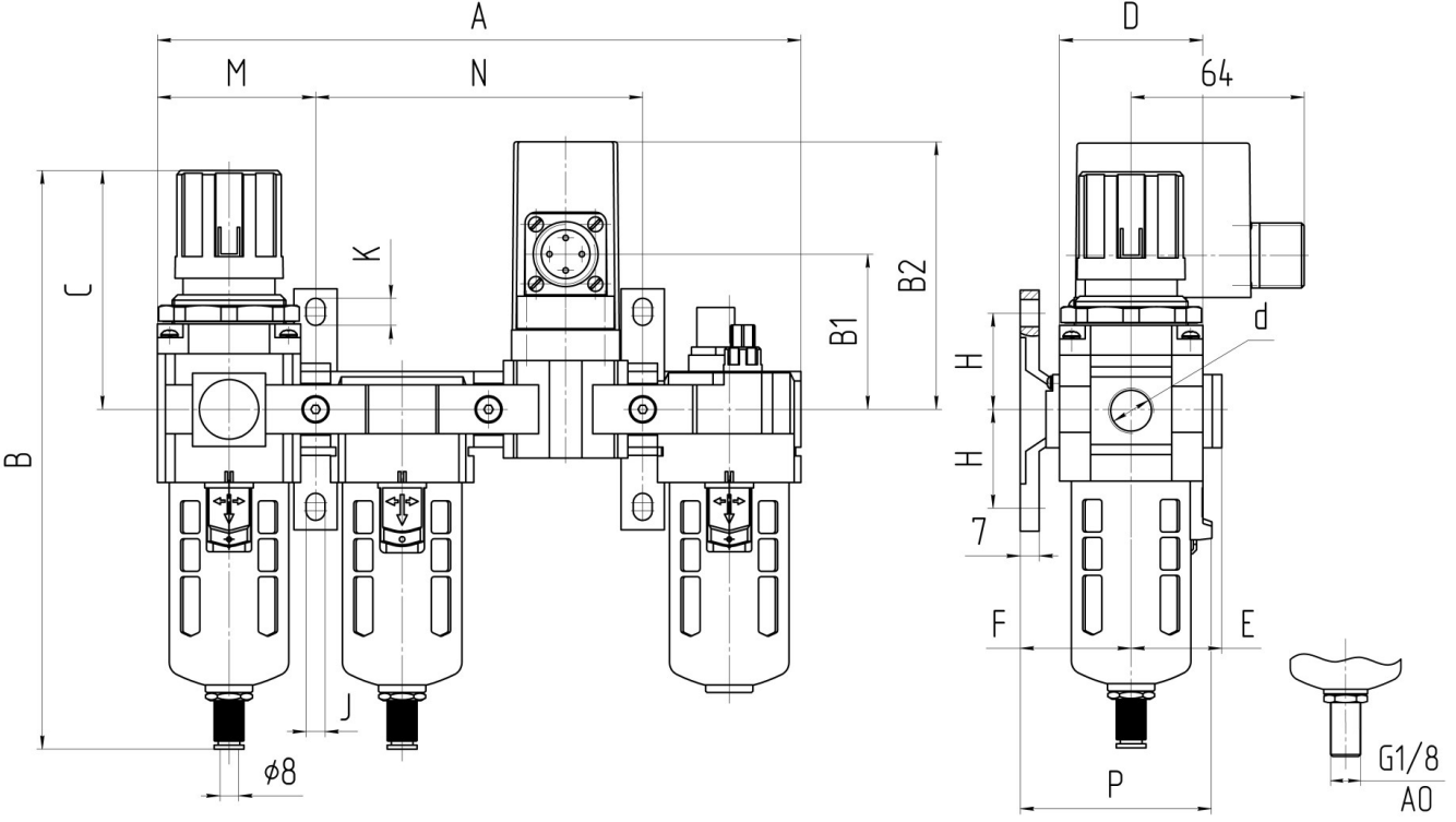 По отдельному заказу возможно изготовление блоков с автоматическим отводом конденсата (-АО) и абсолютной тонкостью фильтрации 5 мкм (-5).