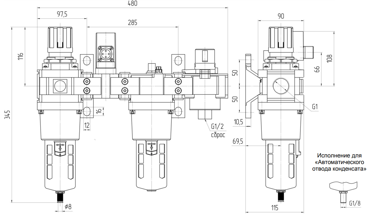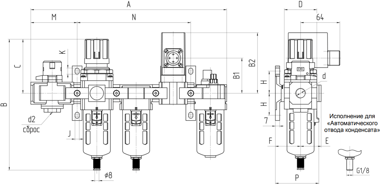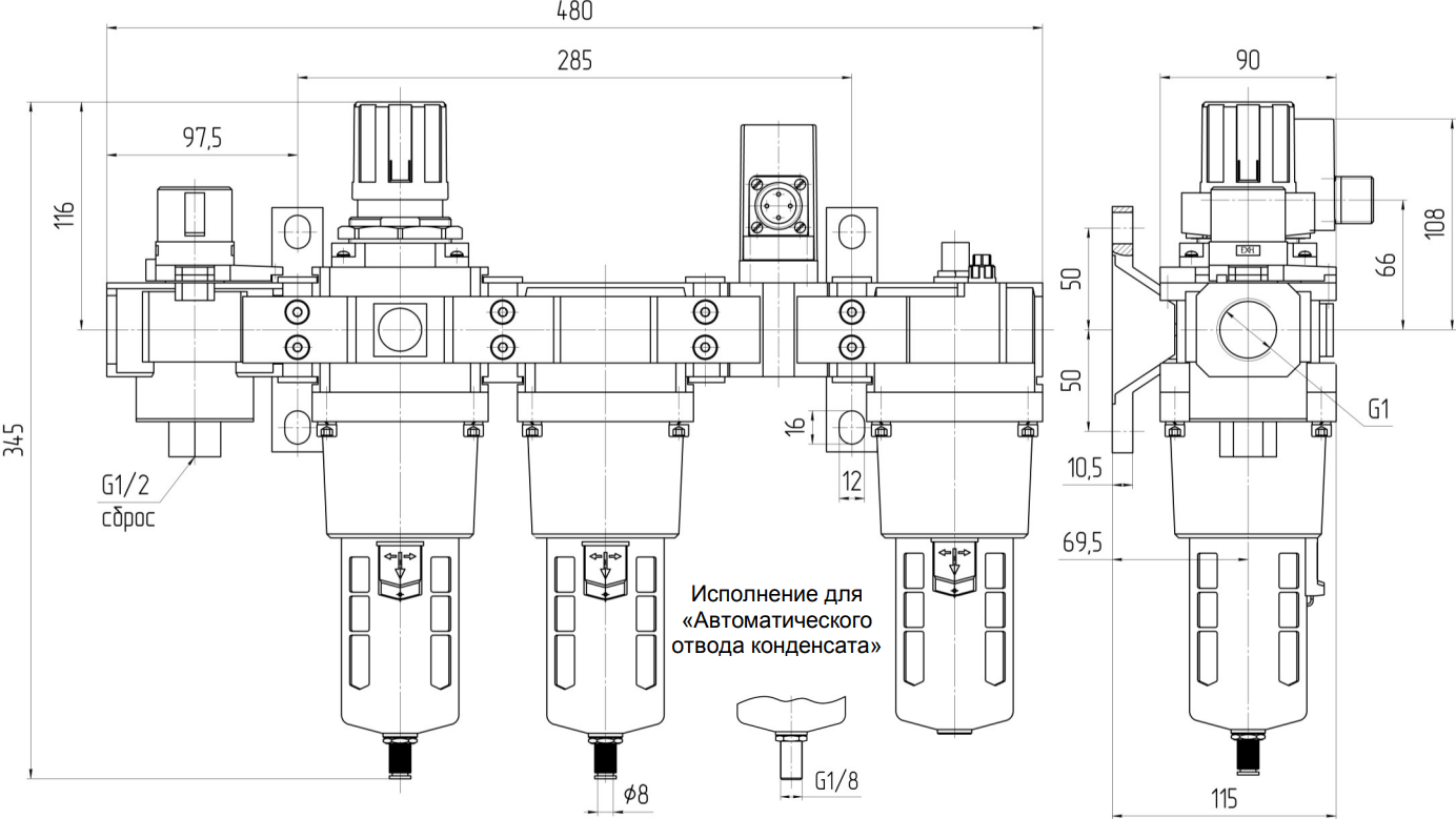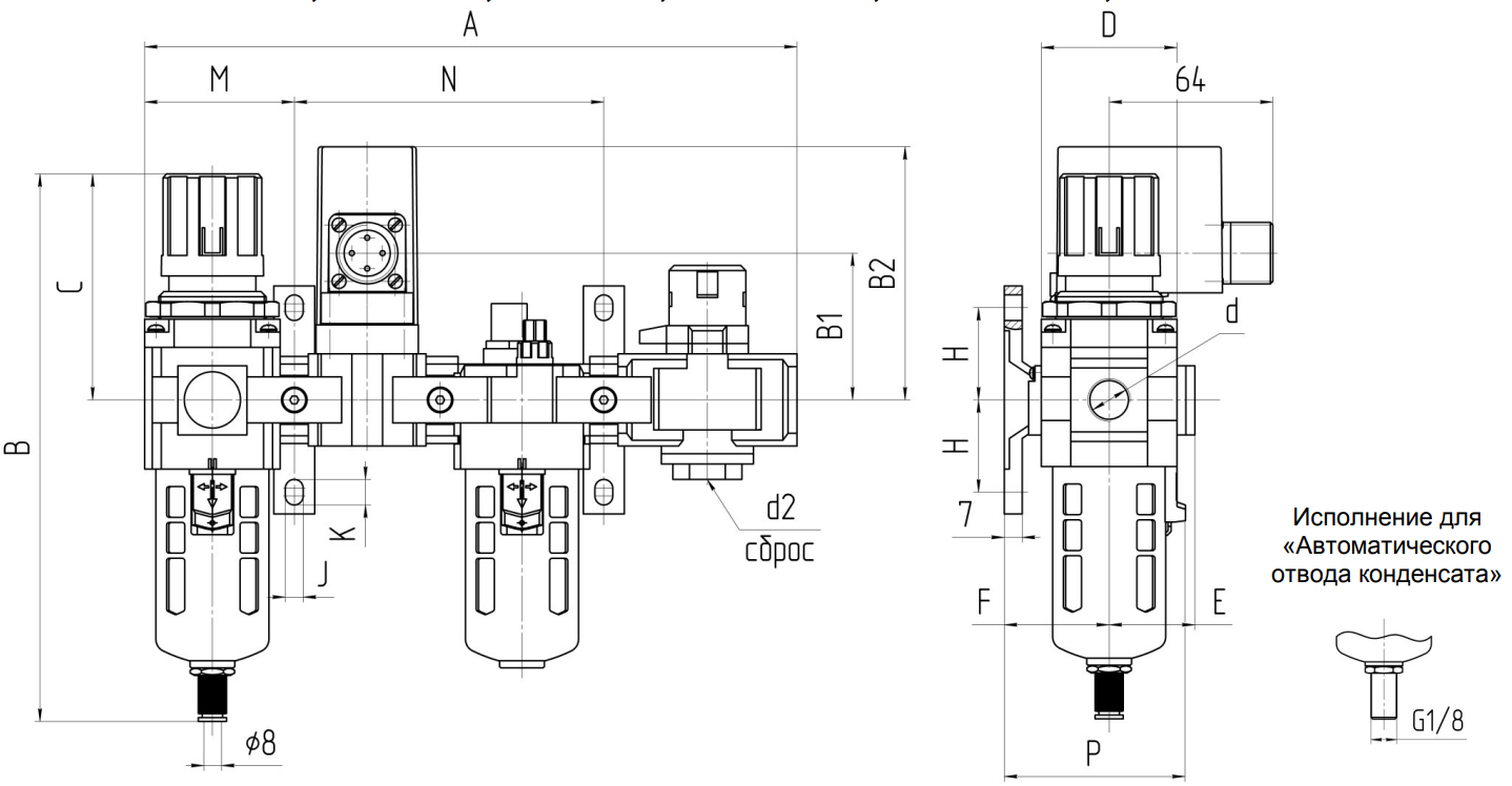 По отдельному заказу возможно изготовление блоков с автоматическим отводом конденсата (-АО) и абсолютной тонкостью фильтрации 5 мкм (-5).