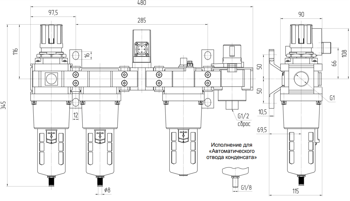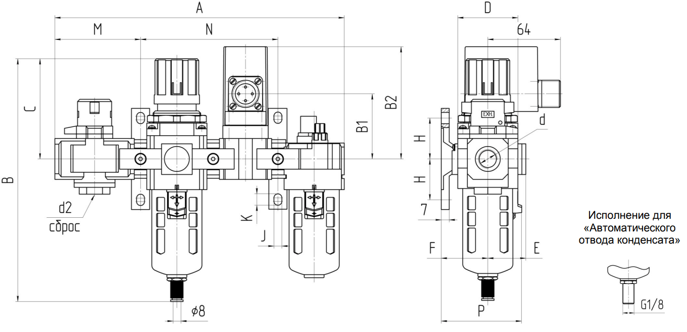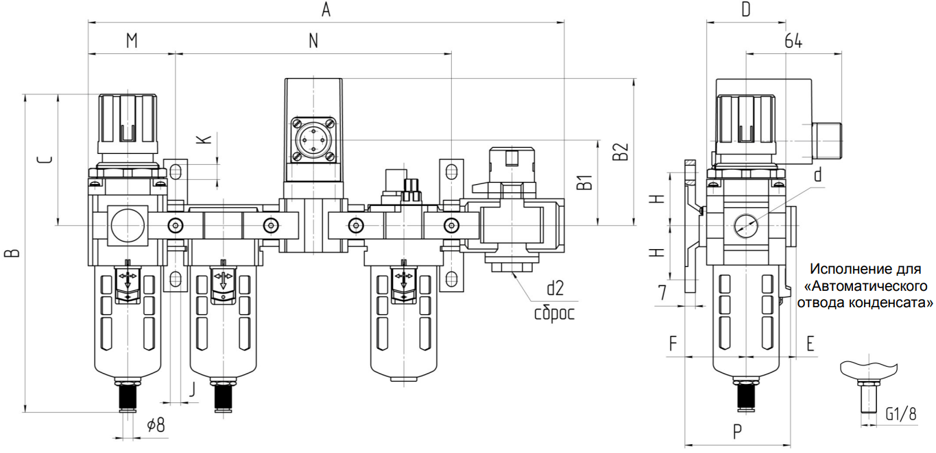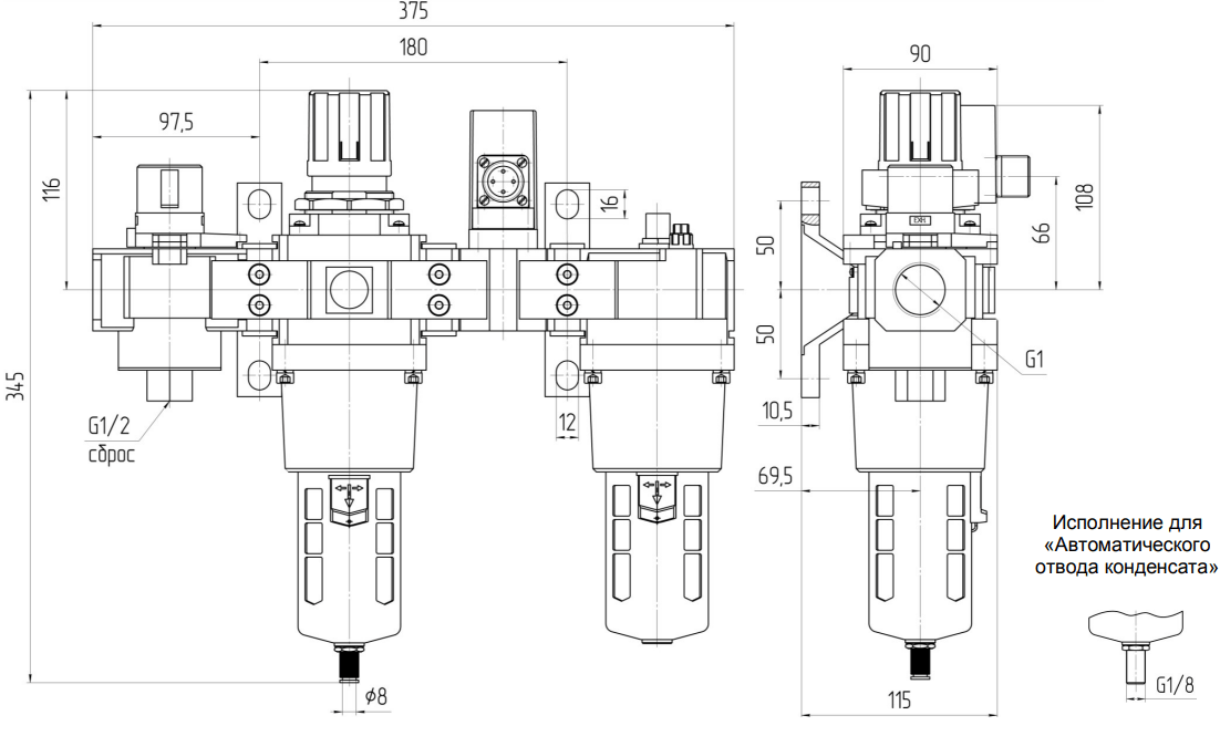 По отдельному заказу возможно изготовление блоков с автоматическим отводом конденсата (-АО) и абсолютной тонкостью фильтрации 5 мкм (-5).